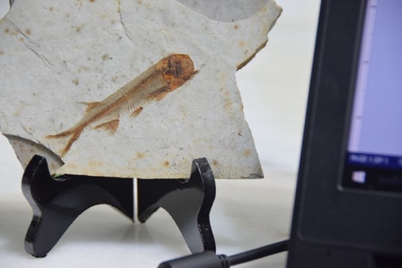最近买了一个小小的化石,摆在电脑旁边,眼睛累了就望它两眼。因为对化石认识不深,无从判断真假,姑且当它真的是一亿年前一条鱼的遗体。