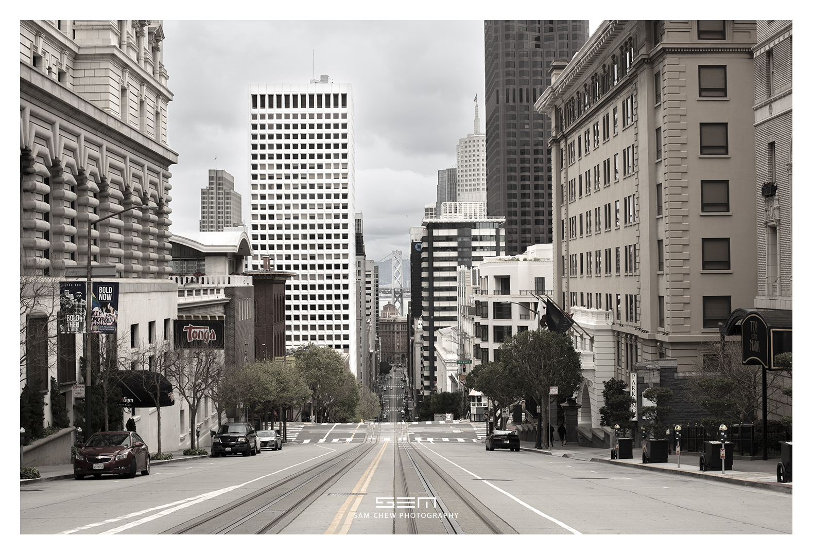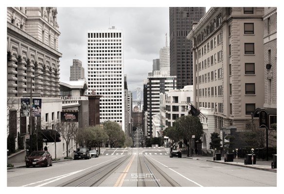 作者说明:照片是旧金山著名的 California Street,平时车水马龙,根本不可能站在路中央拍摄,今天早上出去记录历史。