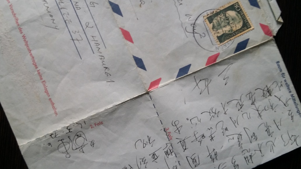 1972年去欧洲前,接到一封在德国同学的信,“天下乌鸦….到处杨梅….外国的月亮….”, 字里行间,令人颓丧泄气的词句重叠,想必也绞尽脑汁,费一番功夫。然而,它并没让他气馁,使他放弃当年坚决去欧洲的决定。